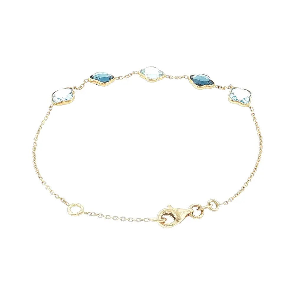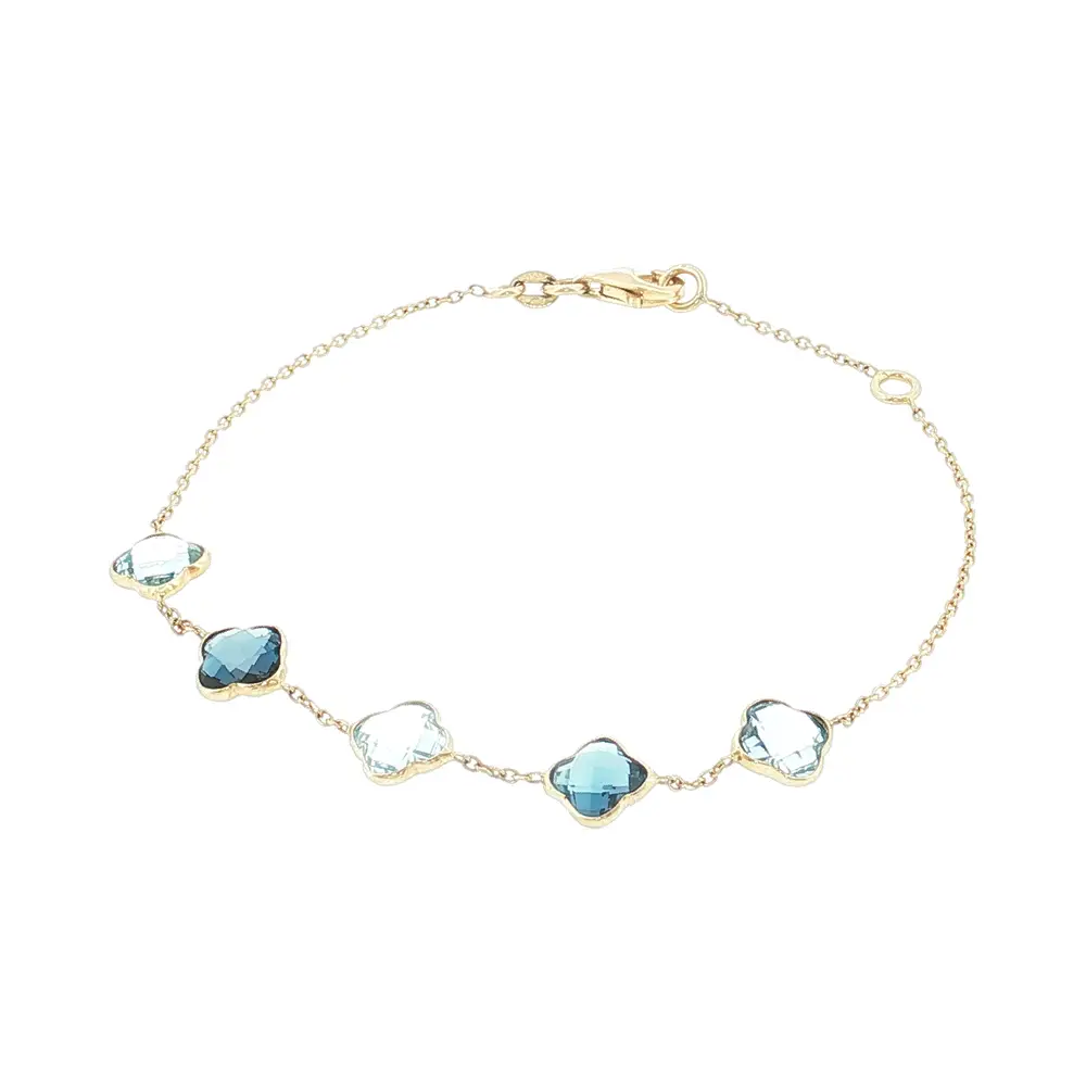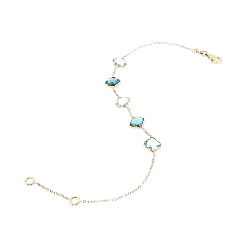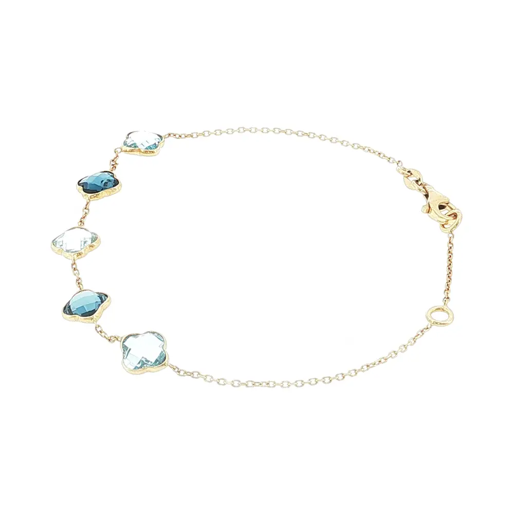 Lắc tay vàng 14K với đá xanh hình cỏ bốn lá