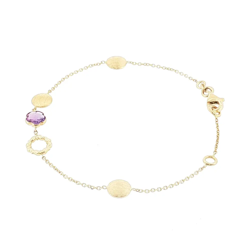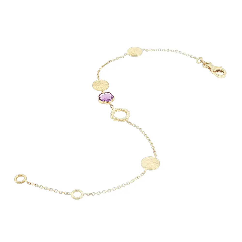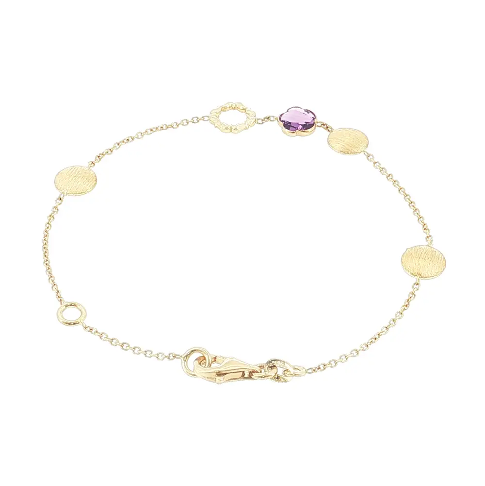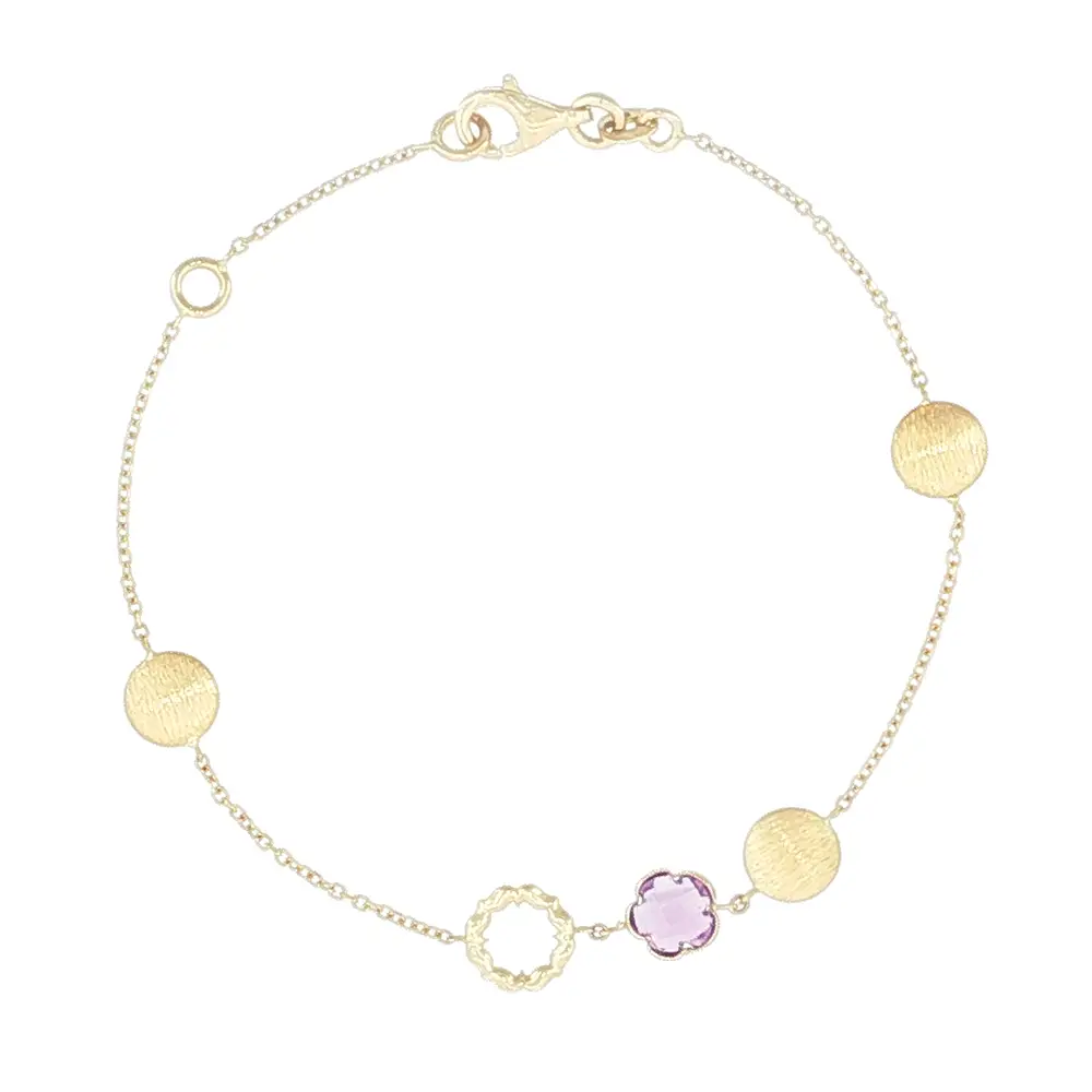 Lắc tay vàng 14K với thạch anh tím và chi tiết vàng