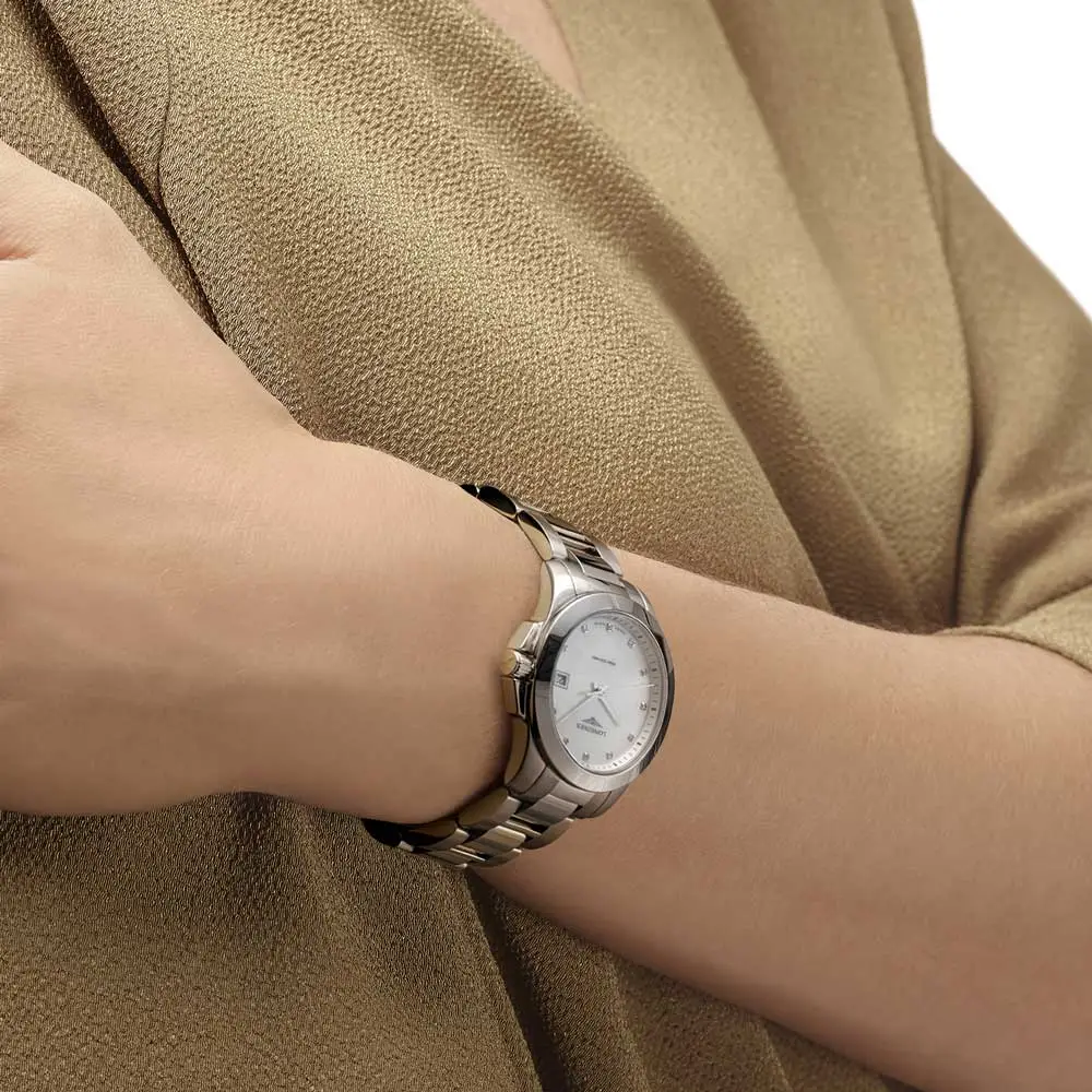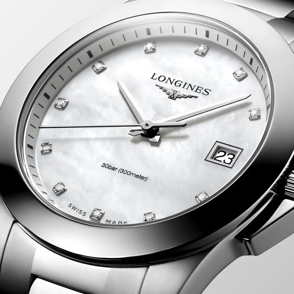 Bên trong là bộ máy quartz L152, đảm bảo độ chính xác và vận hành ổn định với yêu cầu bảo dưỡng tối thiểu. Hoàn thiện với dây thép cùng khóa gập ba lần an toàn, đồng hồ vừa thoải mái vừa chắc chắn. Đây là hiện thân hoàn hảo của tinh thần Conquest – thanh lịch, hiệu suất và độ chính xác Thụy Sĩ.