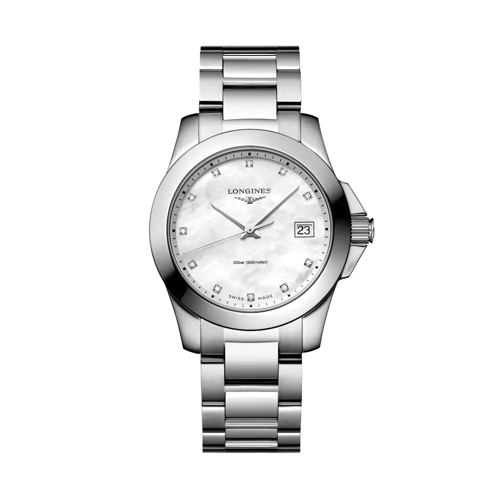 Longines Conquest L3.377.4.87.6 là chiếc đồng hồ nữ thanh lịch, kết hợp vẻ đẹp tinh tế và độ bền bỉ. Vỏ thép không gỉ 34 mm được bảo vệ bởi kính sapphire phủ chống phản chiếu và có khả năng chống nước 30 bar (300 m) ấn tượng.