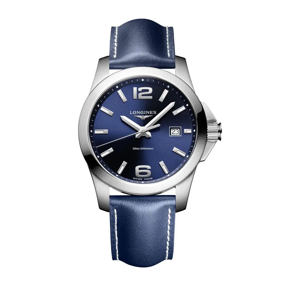 Dây da màu xanh dương với khóa gập mang đến sự thoải mái và vẻ ngoài tinh tế. Longines Conquest L3.759.4.96.0 là lựa chọn hoàn hảo cho những ai tìm kiếm tính năng thể thao, thiết kế thanh lịch và độ tin cậy Thụy Sĩ.