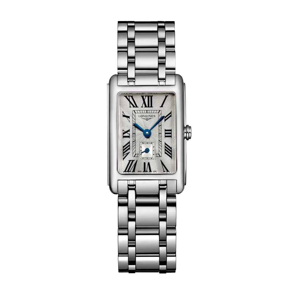 Longines DolceVita L5.255.4.71.6 là mẫu đồng hồ nữ toát lên sự tinh tế và thanh lịch vượt thời gian. Vỏ thép không gỉ 20,80 × 32,00 mm mang lại vẻ ngoài nhỏ gọn, trong khi mặt số bạc “flinqué” với số La Mã và kim xanh nhấn mạnh nét cổ điển của bộ sưu tập DolceVita.