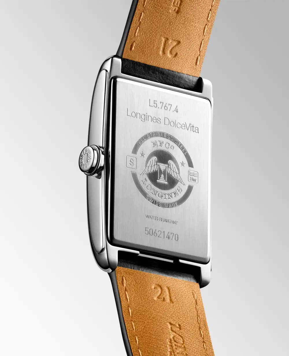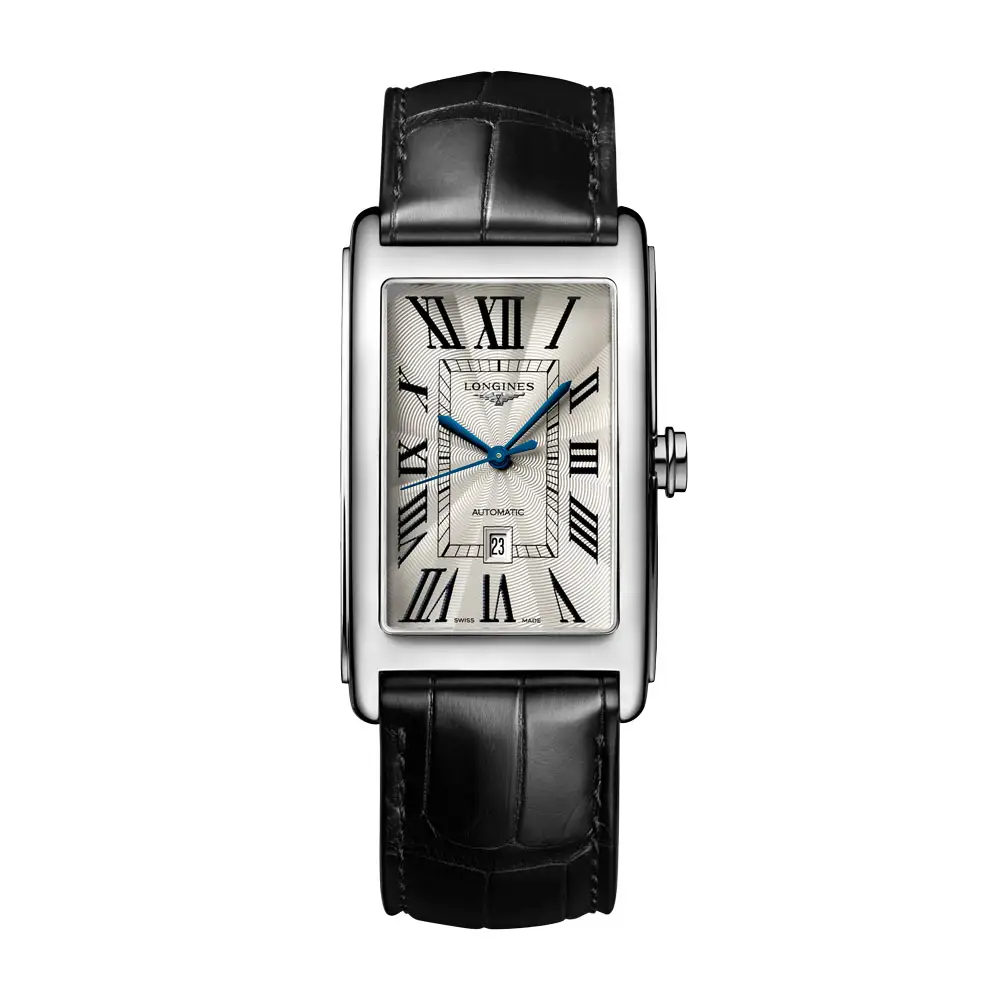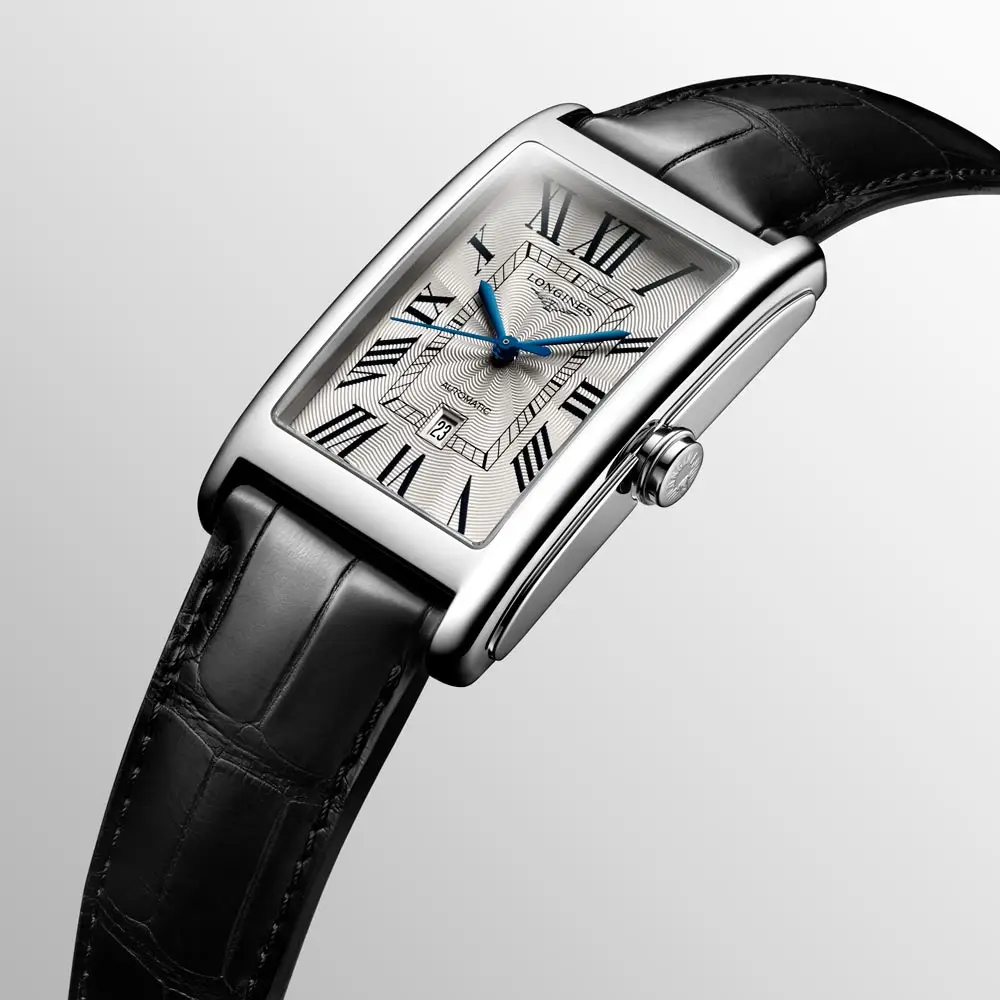 Longines DolceVita L5.767.4.71.0 là mẫu đồng hồ tự động tiếp nối truyền thống của bộ sưu tập DolceVita huyền thoại, mang dáng vẻ cơ học hiện đại. Vỏ thép không gỉ 28,20 × 47,00 mm bao quanh mặt số bạc “flinqué” với số La Mã và kim xanh, tôn lên vẻ đẹp thanh lịch vượt thời gian.