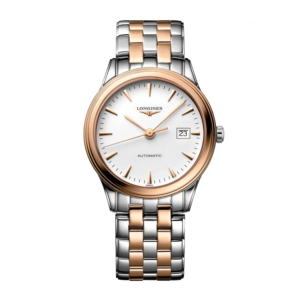 Longines Flagship Classic L4.974.3.92.7 là hiện thân của sự thanh lịch vượt thời gian và truyền thống chế tác đồng hồ Thụy Sĩ. Vỏ thép không gỉ 38,5 mm phủ PVD vàng hồng tạo nên vẻ sang trọng, trong khi mặt số trắng có cửa sổ ngày mang lại sự cân đối và dễ đọc.