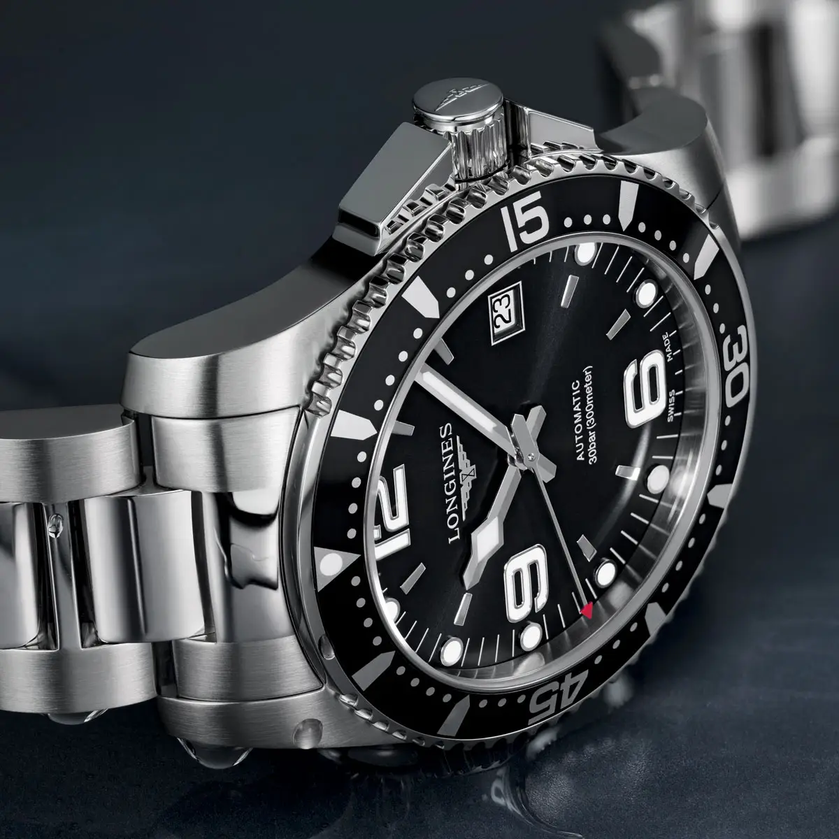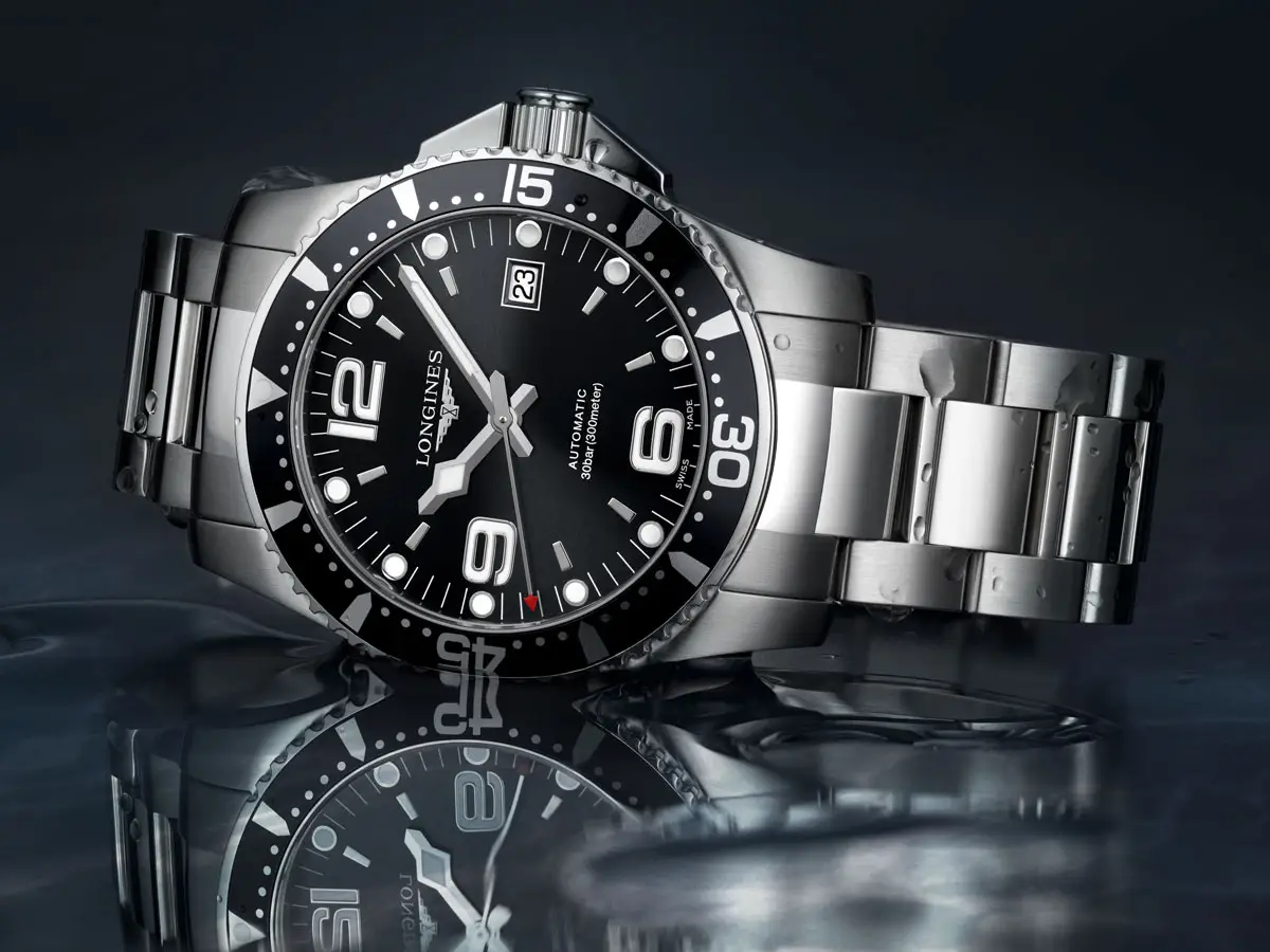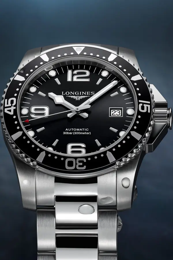 Modely HydroConquest se vyznačují robustním pouzdrem z ušlechtilé oceli, keramiky či titanu, vodotěsností až do 300 metrů a jednosměrně otočnou lunetou pro bezpečné měření času pod vodou. Ciferníky v odstínech modré, černé, šedé či zelené doplňují luminiscenční ručky a indexy, které zajišťují perfektní čitelnost i v hlubinách oceánu.