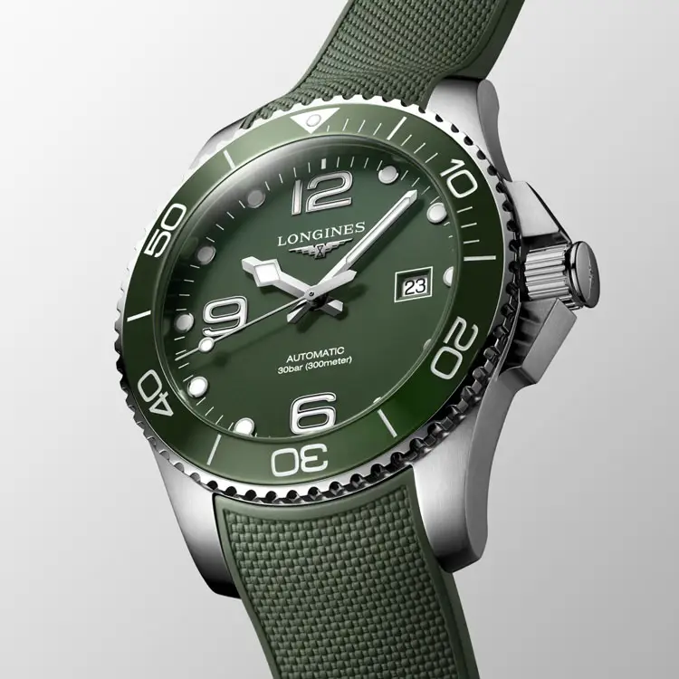 Đi kèm là dây cao su màu xanh với khóa gập, mang đến sự thoải mái và bền bỉ. Longines HydroConquest L3.782.4.06.9 là lựa chọn hoàn hảo cho những người đàn ông yêu thích hiệu năng cao, độ chính xác Thụy Sĩ và thiết kế hiện đại.