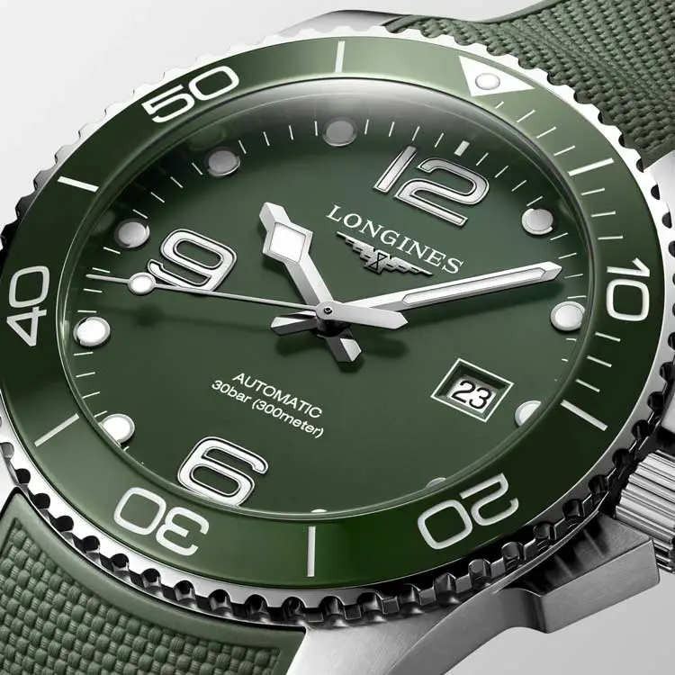 Modely HydroConquest se vyznačují robustním pouzdrem z ušlechtilé oceli, keramiky či titanu, vodotěsností až do 300 metrů a jednosměrně otočnou lunetou pro bezpečné měření času pod vodou. Ciferníky v odstínech modré, černé, šedé či zelené doplňují luminiscenční ručky a indexy, které zajišťují perfektní čitelnost i v hlubinách oceánu.