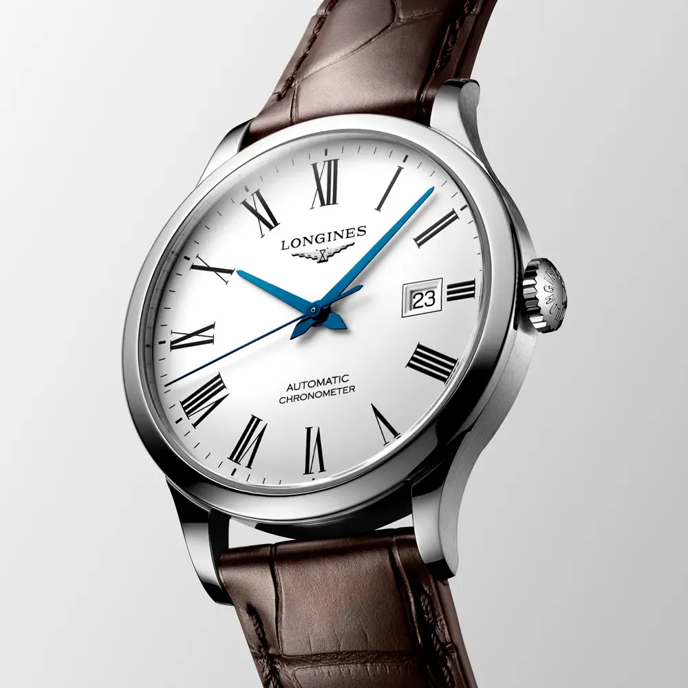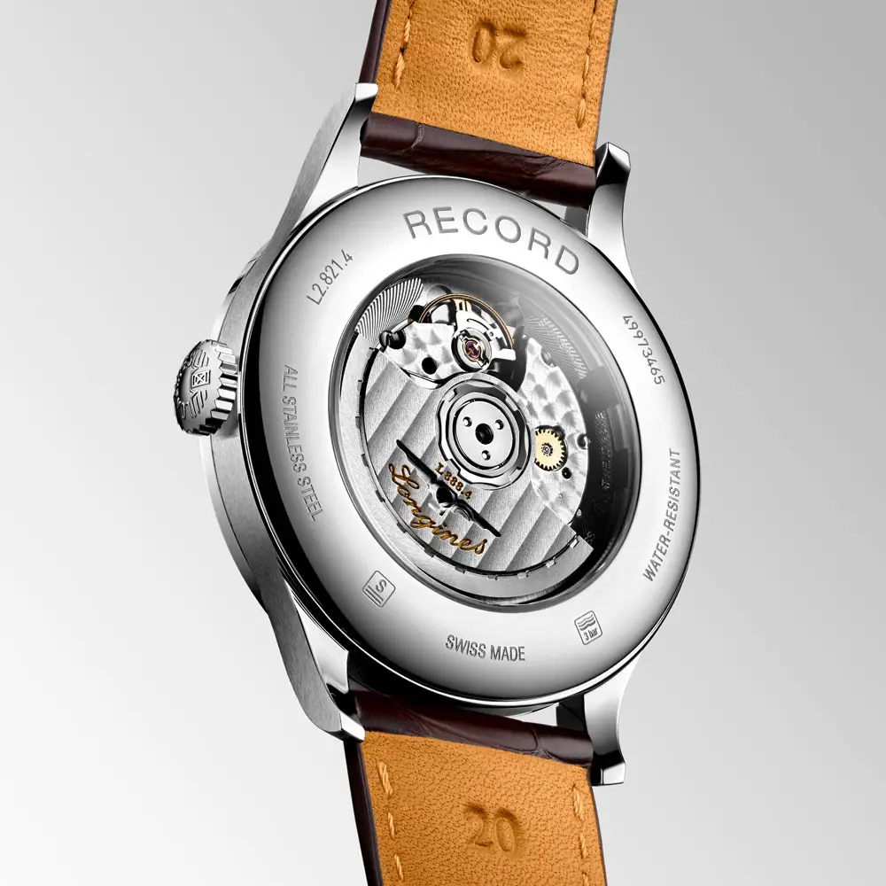 Kolekce Longines Record je poctou tradičnímu hodinářskému umění značky a jejímu neustálému úsilí o dokonalost. Každý model této řady je vybaven mechanickým strojkem s automatickým nátahem, který je certifikován švýcarským institutem COSC (Contrôle Officiel Suisse des Chronomètres) – záruka mimořádné přesnosti a kvality.
