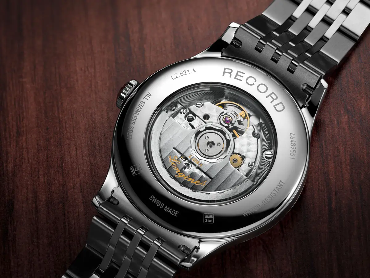 Kolekce Longines Record je poctou tradičnímu hodinářskému umění značky a jejímu neustálému úsilí o dokonalost. Každý model této řady je vybaven mechanickým strojkem s automatickým nátahem, který je certifikován švýcarským institutem COSC (Contrôle Officiel Suisse des Chronomètres) – záruka mimořádné přesnosti a kvality.