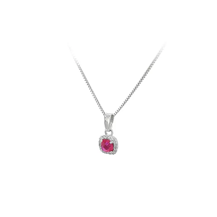 Mặt dây chuyền bằng vàng trắng đính đá đỏ