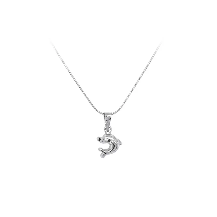 Mặt dây chuyền hình cá heo với đá zircon trắng vàng