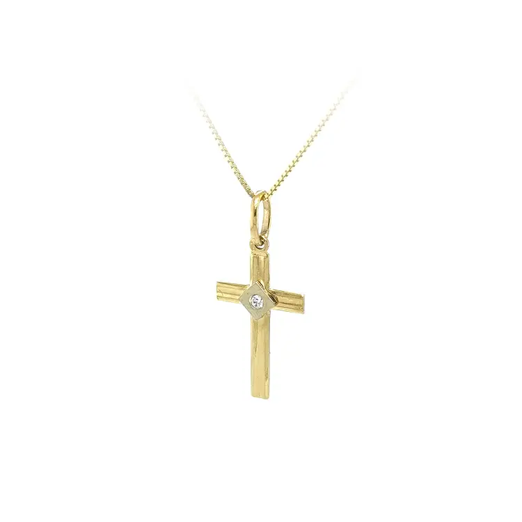 Mặt dây chuyền hình thánh giá bằng vàng đính đá zircon