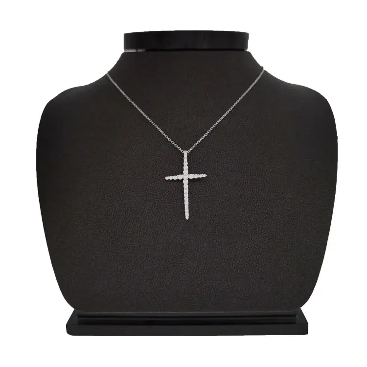 Mặt dây chuyền thánh giá vàng đính kim cương kết hợp ý nghĩa tâm linh với vẻ thanh lịch vượt thời gian. Chế tác từ vàng trắng 18kt (750/1000), hoàn thiện đánh bóng, cùng họa tiết thánh giá (tôn giáo)—nhẹ nhàng nhưng nổi bật, hợp đeo hằng ngày lẫn dịp đặc biệt.