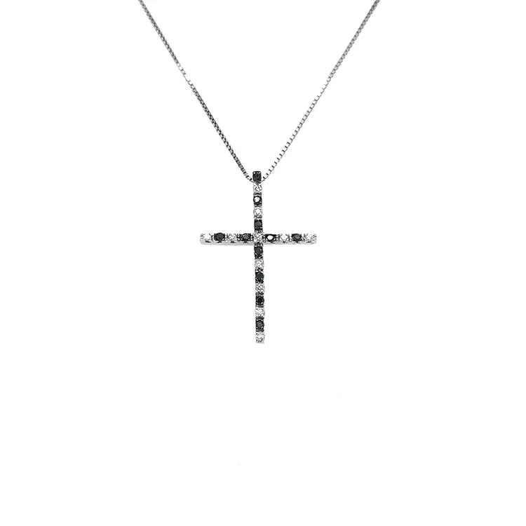 Mặt dây chuyền hình thánh giá bằng vàng với kim cương đen và trắng