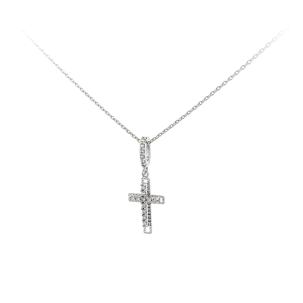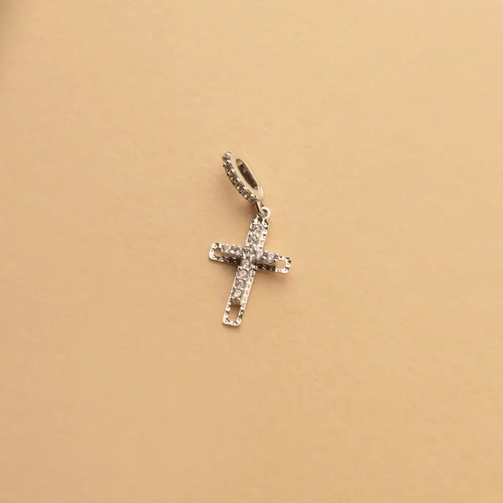 Mặt dây chuyền hình thánh giá với đá zircon trắng và vàng trắng