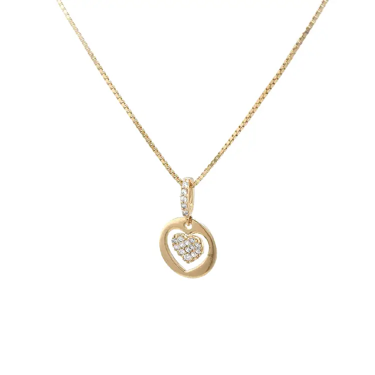 Mặt dây chuyền hình trái tim bằng vàng đính đá zircon