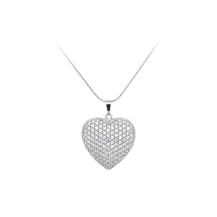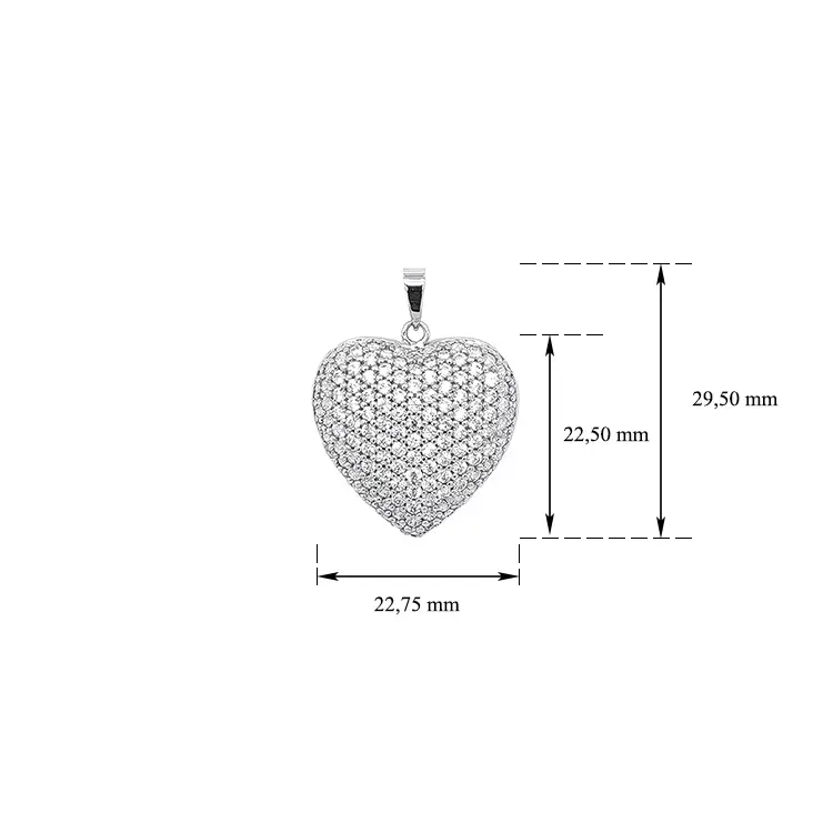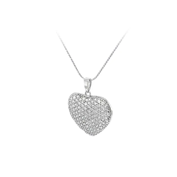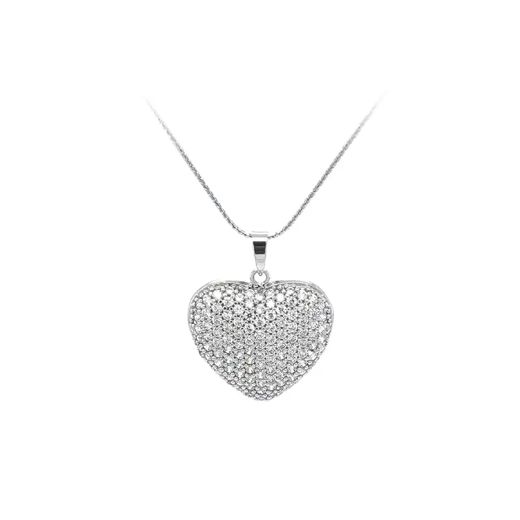 Mặt dây chuyền hình trái tim với đá zircon trắng vàng