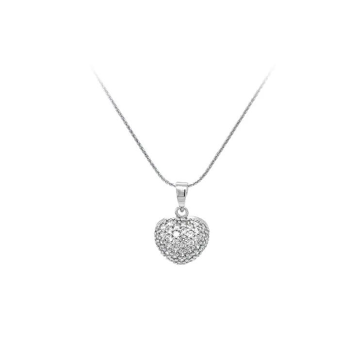 Mặt dây chuyền hình trái tim với đá zircon trắng vàng