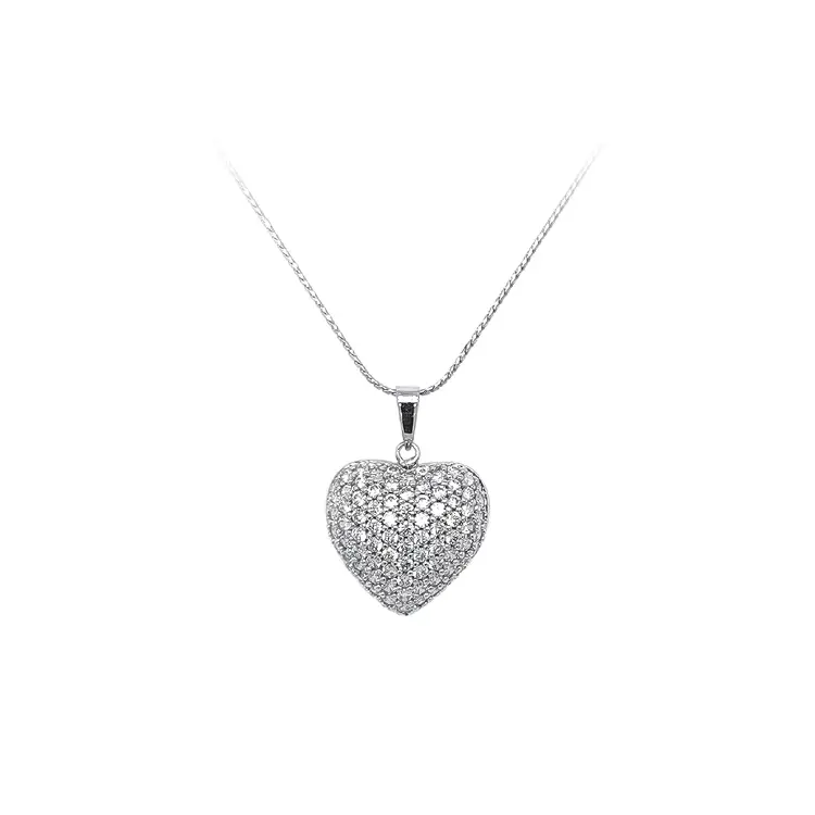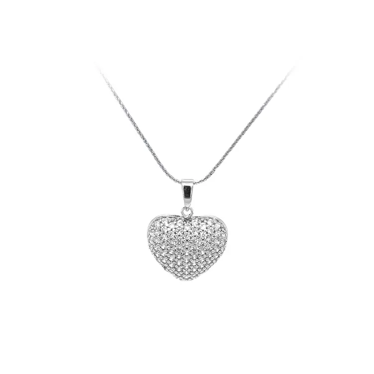 Mặt dây chuyền hình trái tim với đá zircon trắng vàng