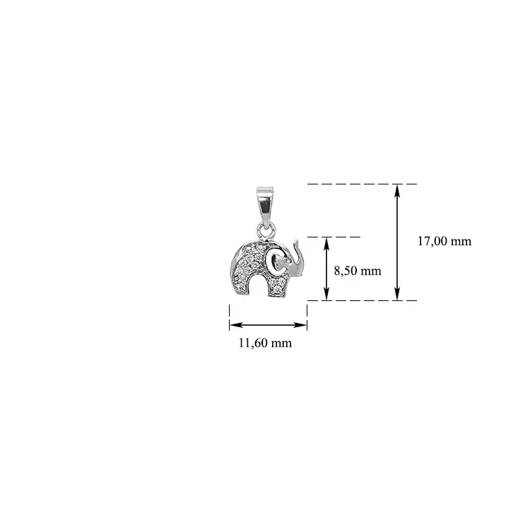 Mặt dây chuyền hình voi với đá zircon trắng vàng