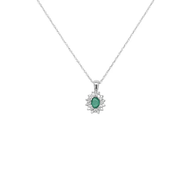 Mặt dây chuyền ngọc lục bảo đính kim cương vàng trắng