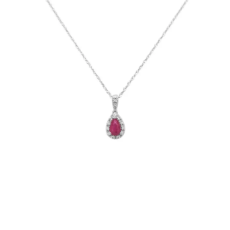 Mặt dây chuyền Ruby đính kim cương trắng vàng