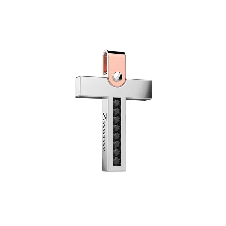 Zancan EPE099BR là mặt dây chuyền thanh lịch, kết hợp thiết kế Ý hiện đại với biểu tượng đức tin cá nhân. Chế tác từ vàng 18kt (750/1000) hai tông trắng & hồng (bicolor), hoàn thiện đánh bóng, điểm xuyết họa tiết thánh giá (tôn giáo)—một thiết kế vượt thời gian, hợp cả thường ngày lẫn trang trọng.