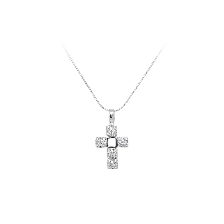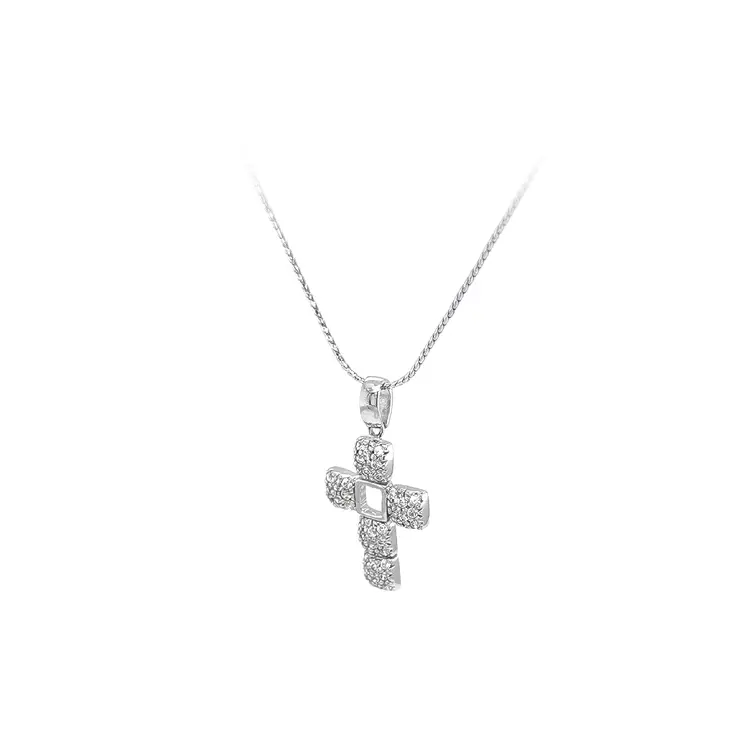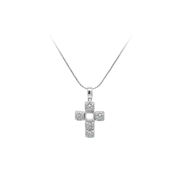 Mặt dây chuyền thánh giá với đá zircon trắng và vàng trắng