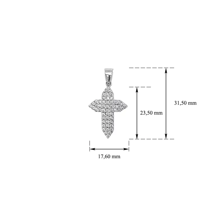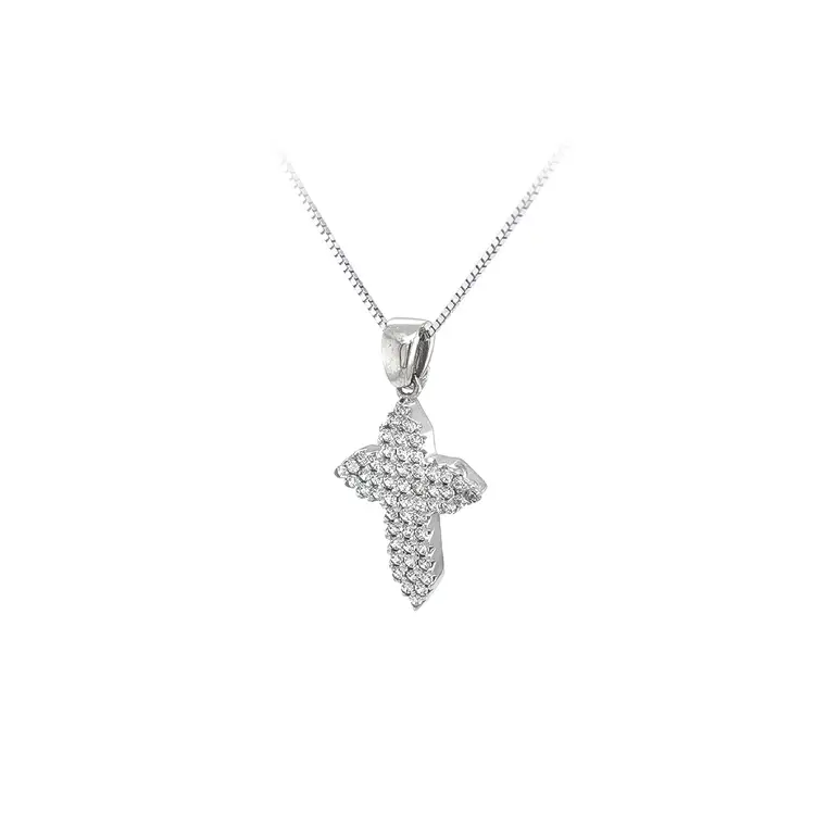 Mặt dây chuyền thánh giá với đá zircon trắng và vàng trắng