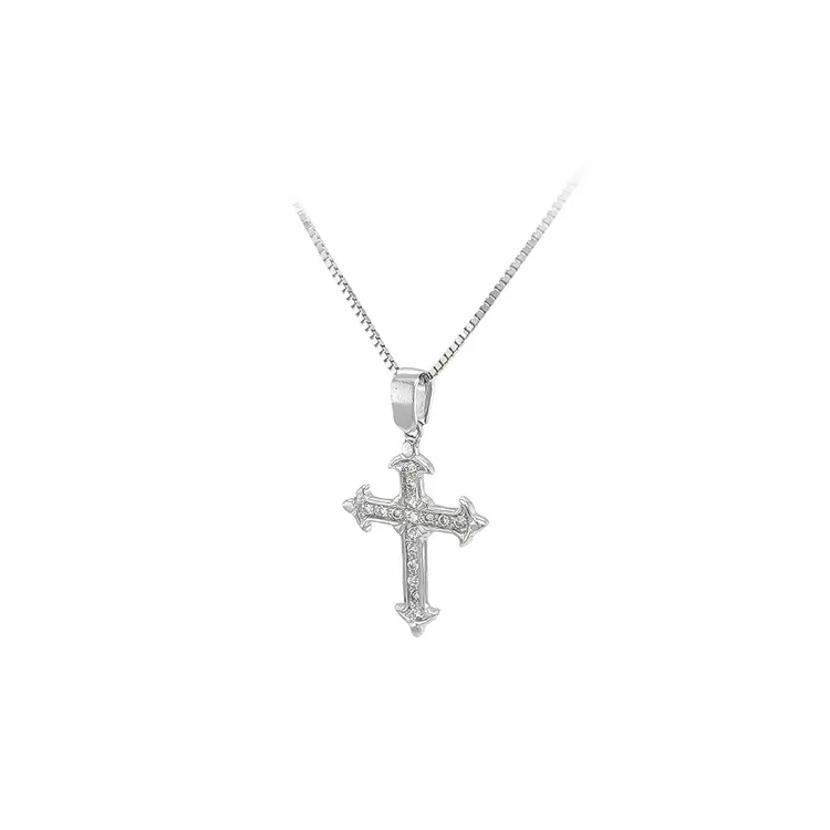 Mặt dây chuyền thánh giá với đá zircon trắng và vàng trắng
