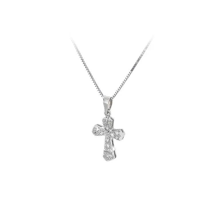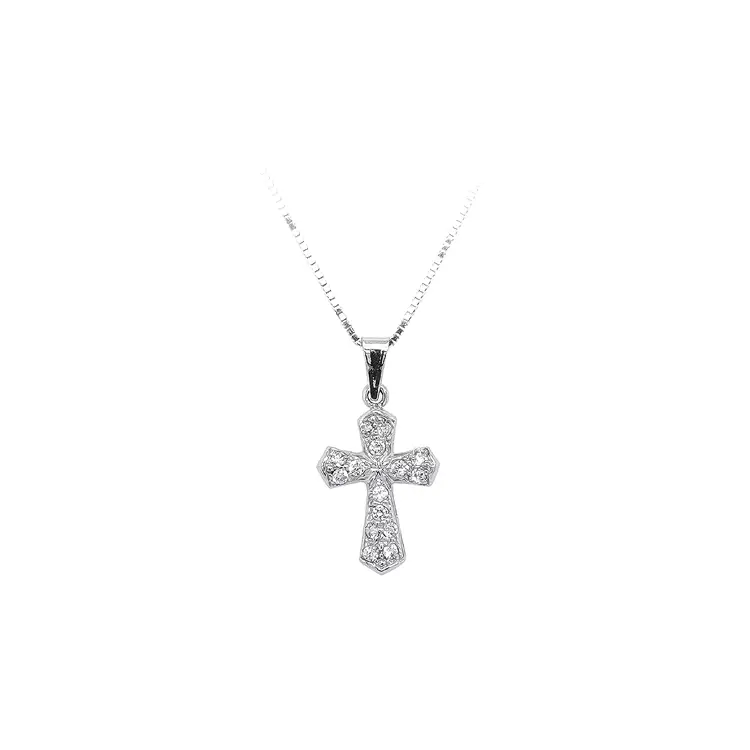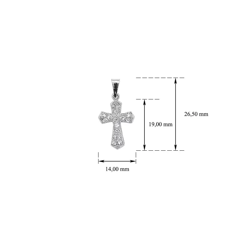 Mặt dây chuyền thánh giá với đá zircon trắng và vàng trắng