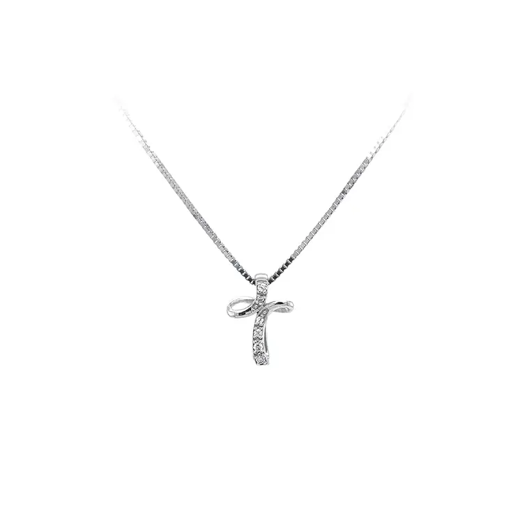 Mặt dây chuyền thánh giá với đá zircon trắng và vàng trắng