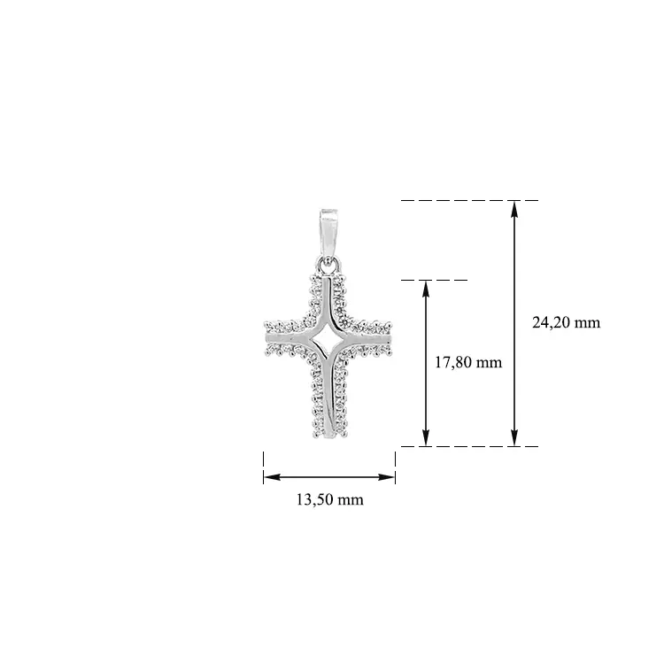 Mặt dây chuyền thánh giá với đá zircon trắng và vàng trắng