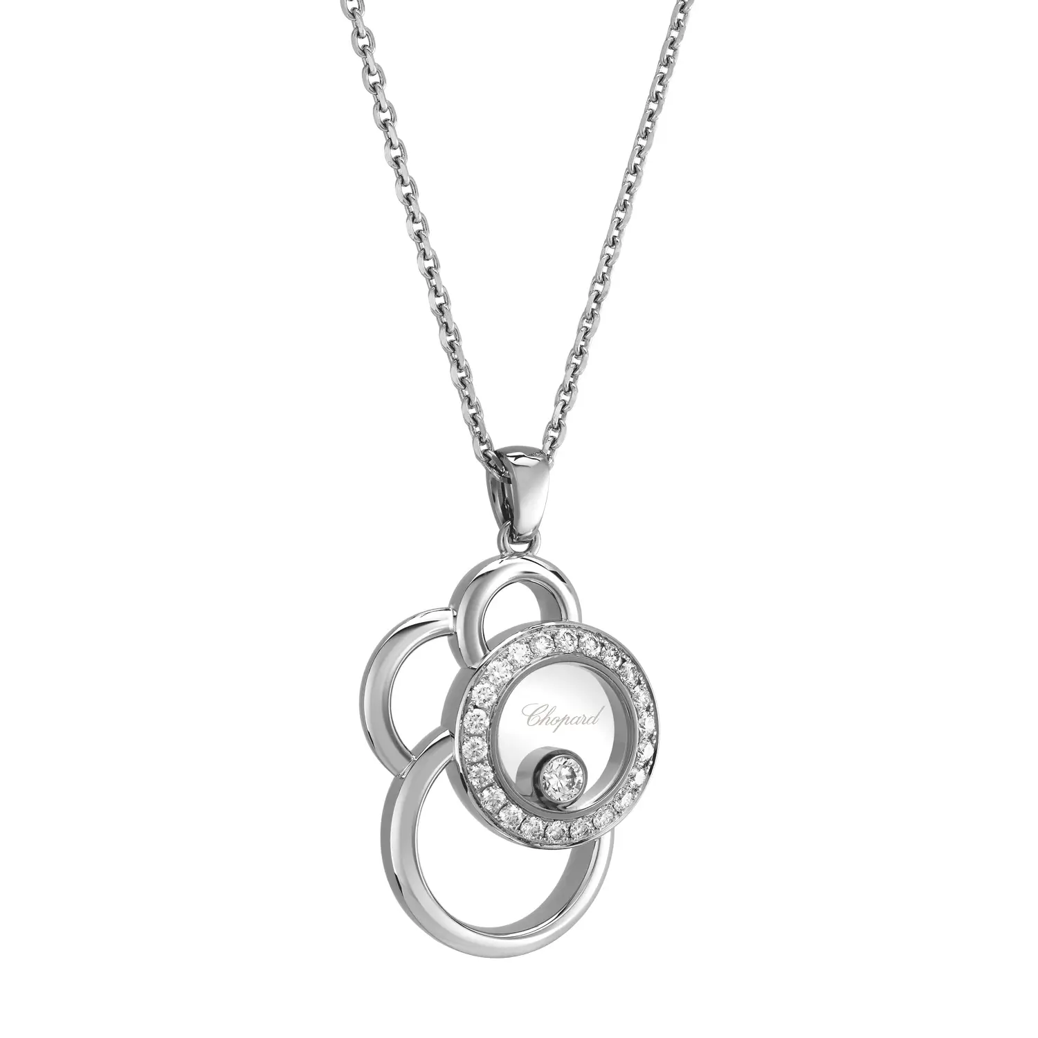 Mặt dây chuyền Chopard Happy Diamonds 799888-1002 là sự thể hiện chân thực của sự xa hoa và nghệ thuật chế tác trang sức tối giản. Được chế tác từ vàng trắng 18 karat (750/1000) với bề mặt đánh bóng hoàn hảo, món trang sức này toát lên vẻ sang trọng và tinh tế vượt thời gian.
