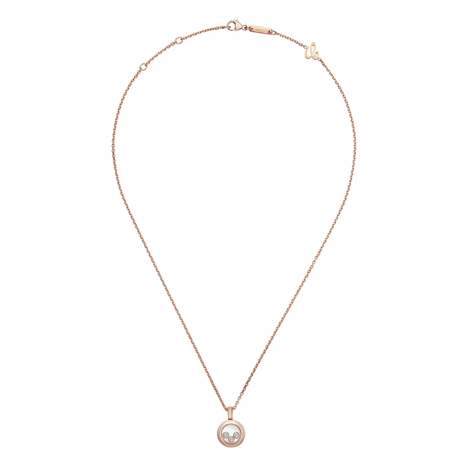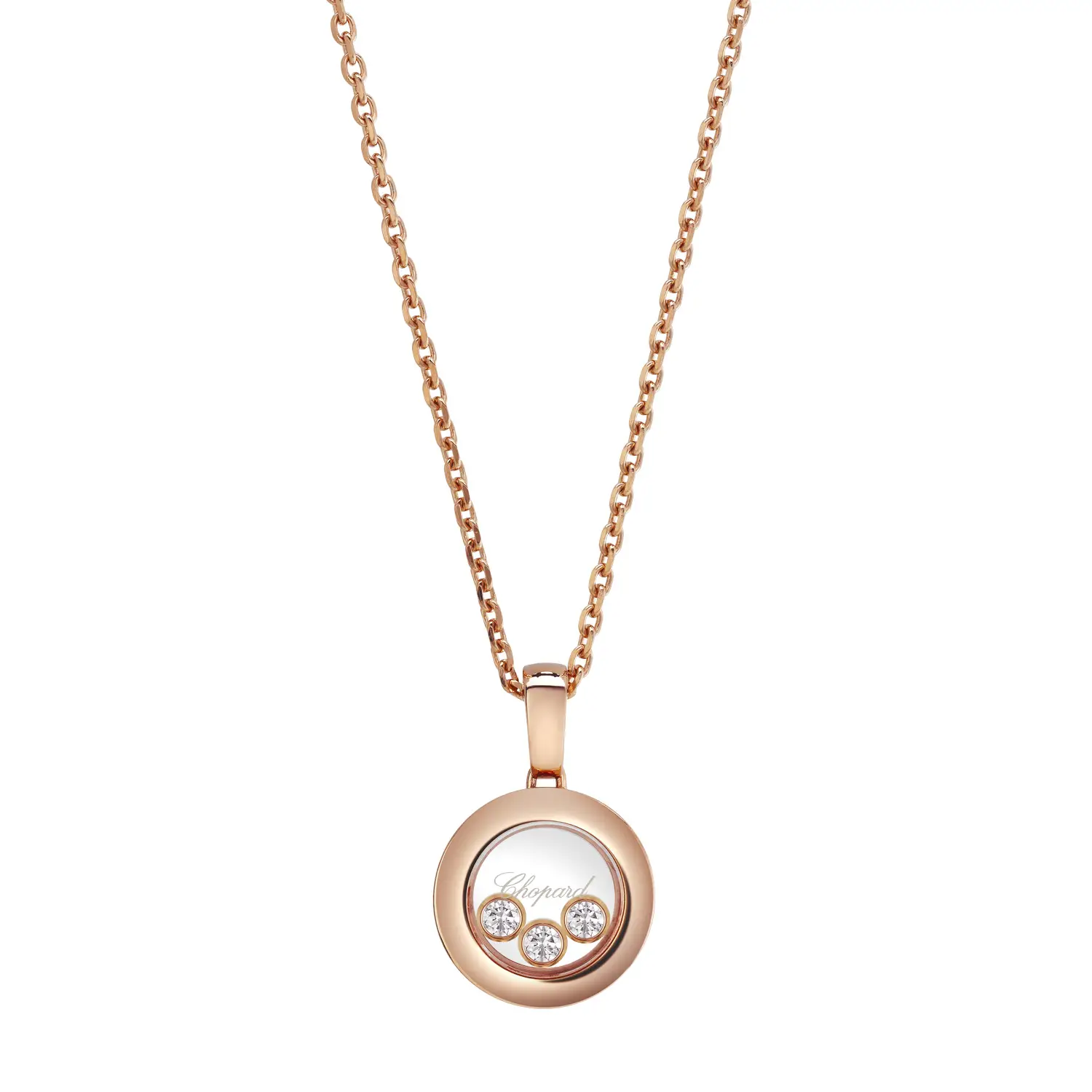 Mặt dây chuyền Chopard Happy Diamonds 79A018-5001 nổi bật với sự thanh lịch tối giản và thiết kế tinh xảo. Trang sức này được chế tác từ vàng hồng 18 karat (750/1000) với bề mặt đánh bóng hoàn hảo, mang lại vẻ mềm mại nhưng vẫn đầy ấn tượng.