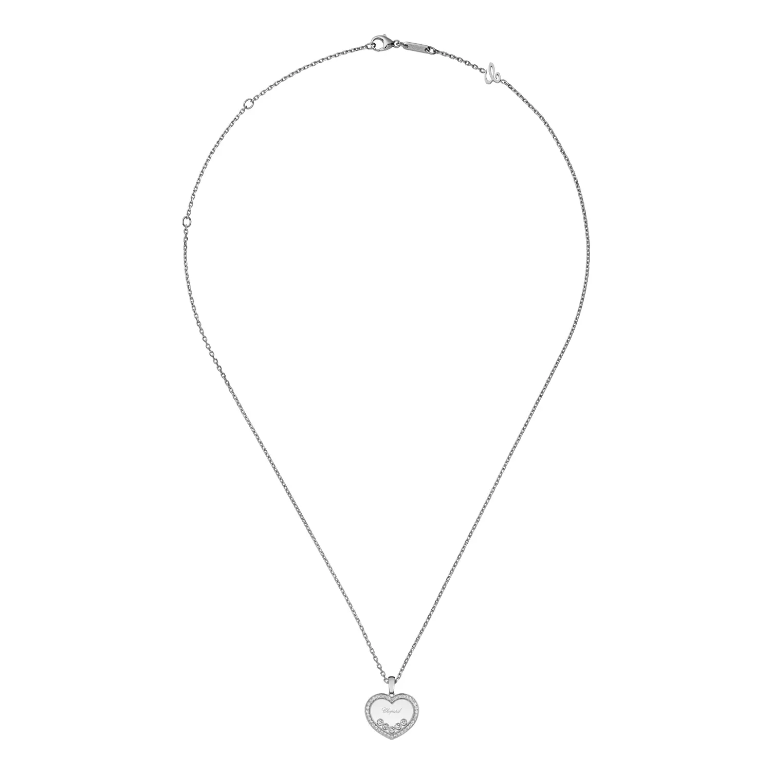 Mặt dây chuyền Chopard Happy Diamonds Icons 79A038-1201 thể hiện vẻ đẹp thanh lịch, niềm vui và sự nhẹ nhàng – tinh thần của bộ sưu tập huyền thoại này. Được chế tác từ vàng trắng 18 cara có nguồn gốc đạo đức, mặt dây hình tròn chứa ba viên kim cương tự do chuyển động (tổng trọng lượng 0,73 cara) giữa hai lớp kính sapphire, tạo nên hiệu ứng “dancing diamonds” đặc trưng tượng trưng cho tự do và ánh sáng.