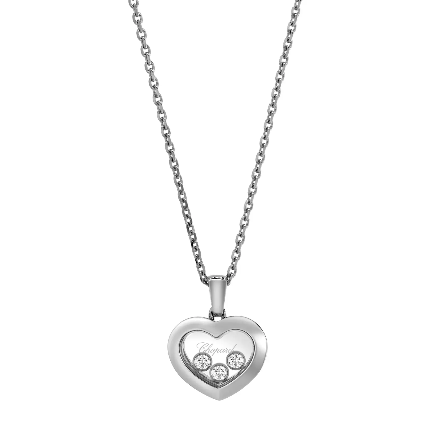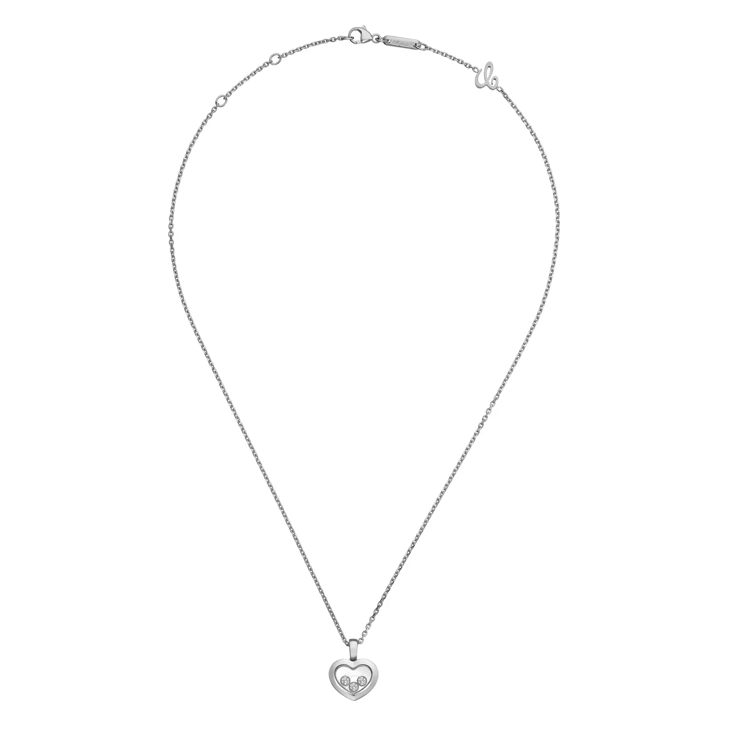Chiếc mặt dây chuyền thanh lịch này thuộc bộ sưu tập Happy Diamonds Icons, thể hiện niềm vui, sự tự do và vẻ đẹp nữ tính. Được chế tác từ vàng trắng 18 k, điểm xuyết những viên kim cương chuyển động tự do tổng trọng lượng khoảng 0,15 ct, nằm giữa hai lớp kính sapphire, tạo nên hiệu ứng ánh sáng lung linh độc đáo.