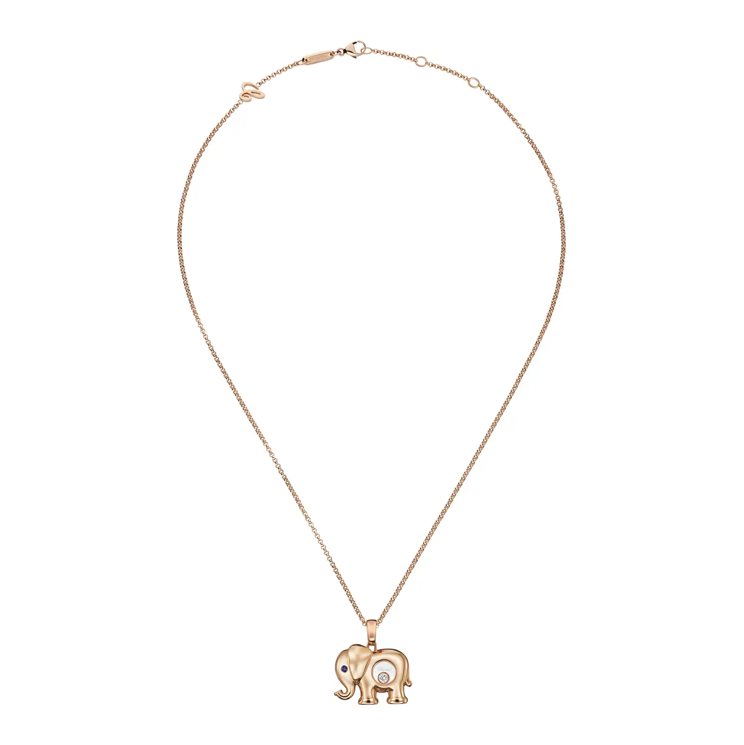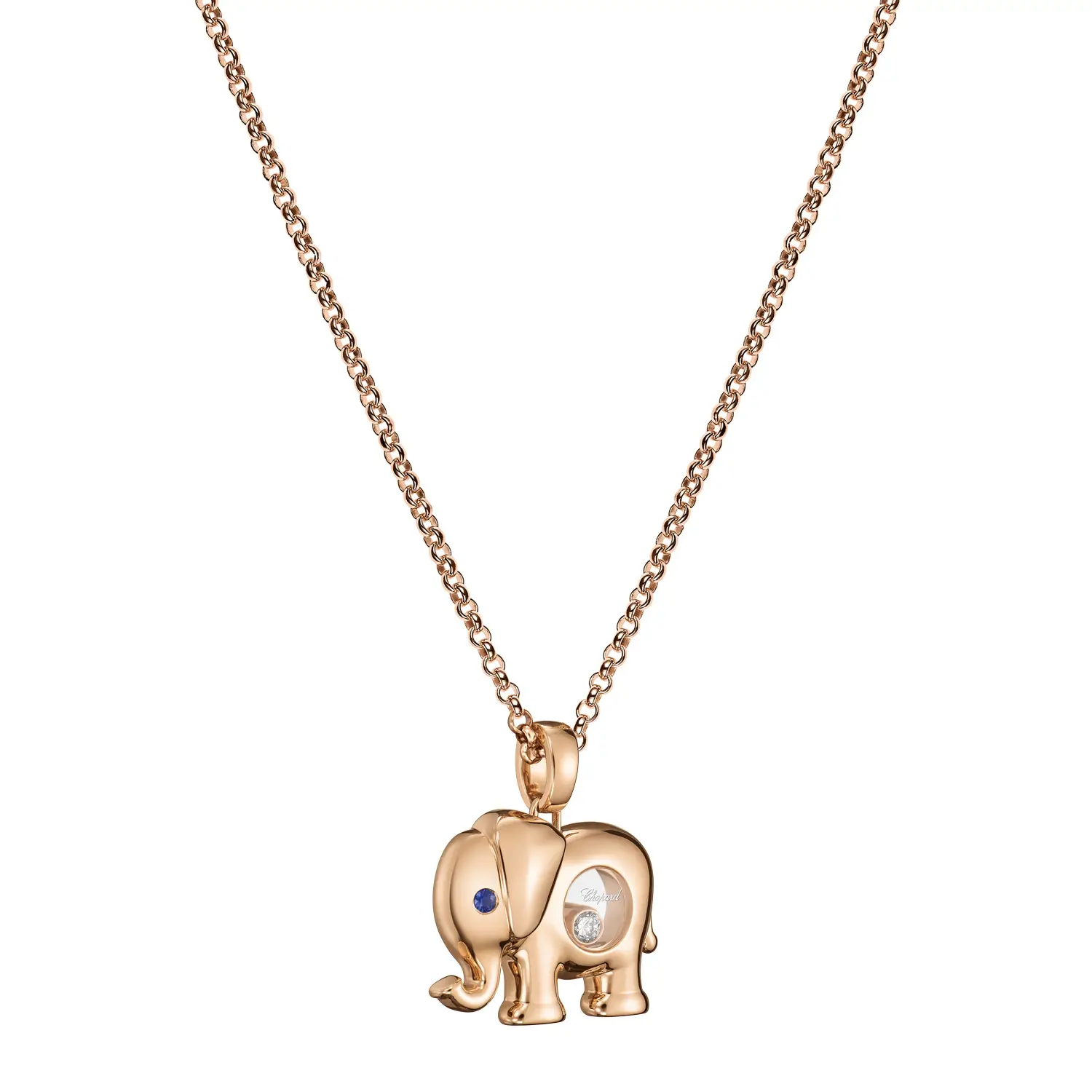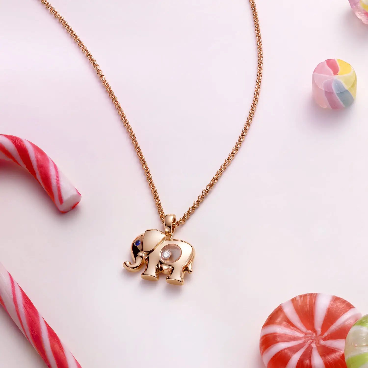 Mặt dây chuyền Chopard Happy Diamonds Elephant 79A189-5001 mang đến sự kết hợp giữa nghệ thuật tinh nghịch và tay nghề chế tác xa hoa. Được thiết kế với hình tượng chú voi duyên dáng, nó được chế tác tinh xảo từ vàng hồng 18 karat (750/1000) với bề mặt đánh bóng, toát lên vẻ thanh lịch tinh tế.