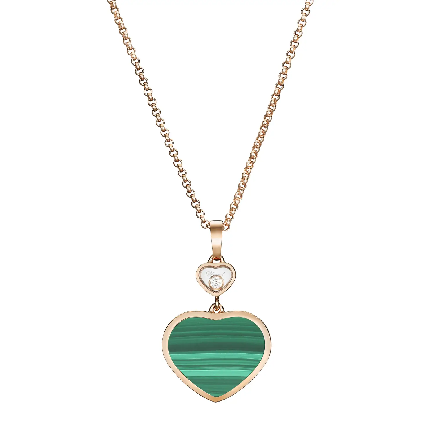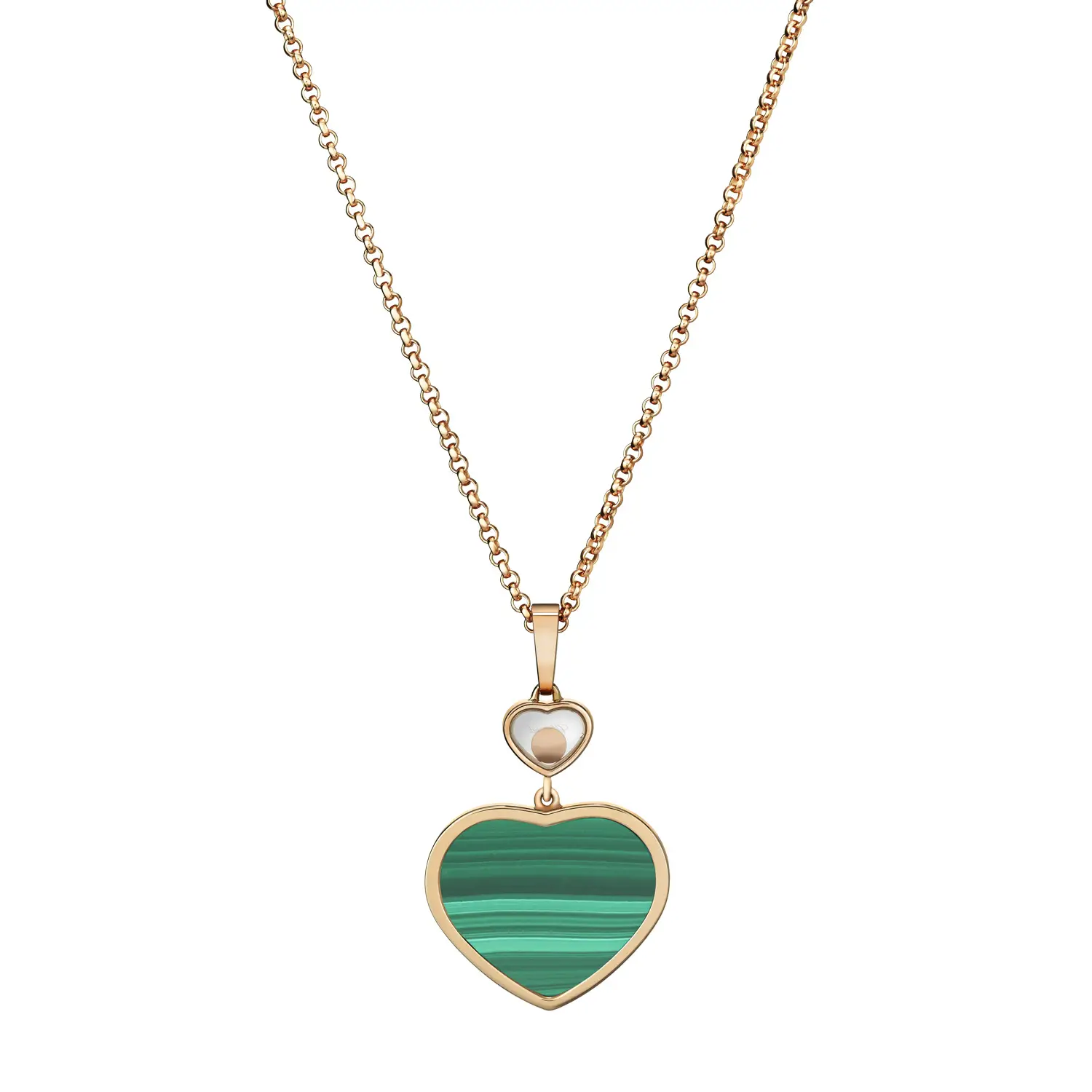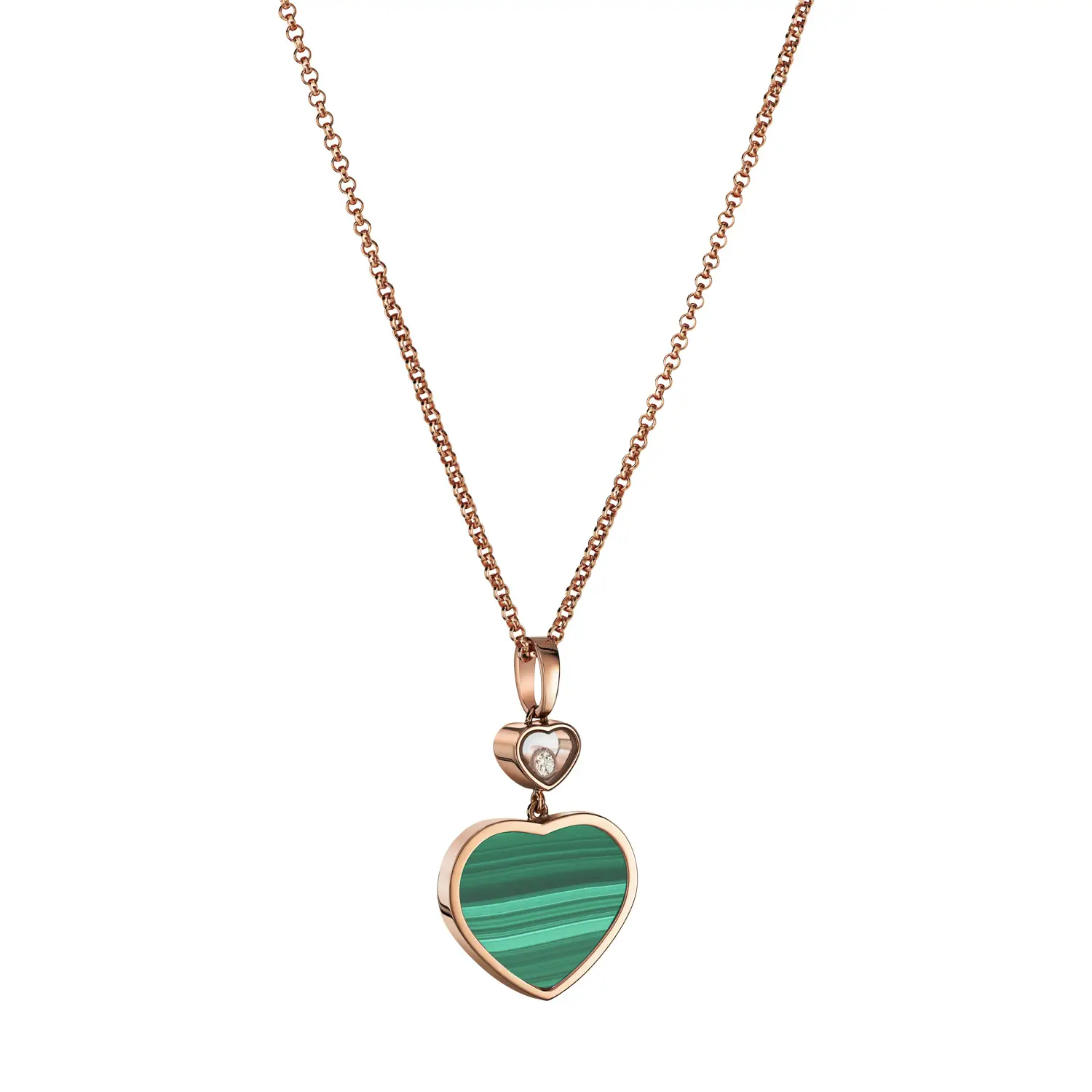 Chopard Happy Hearts 797482-5151 là một mặt dây chuyền xa xỉ đầy cuốn hút, kể câu chuyện về sự thanh lịch, tình yêu và sức mạnh của đá quý thiên nhiên. Tác phẩm đặc biệt này được chế tác từ vàng hồng 18K (750/1000) với bề mặt đánh bóng, tôn lên sắc ấm áp và vẻ đẹp quyến rũ khó cưỡng.