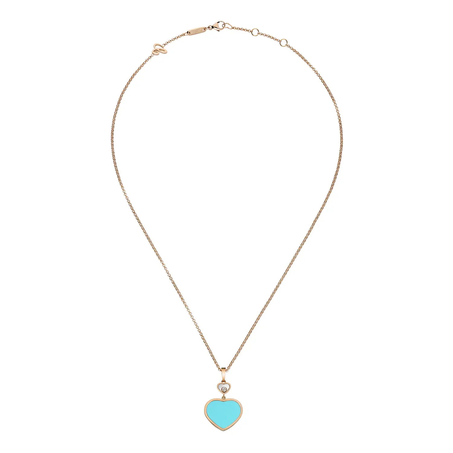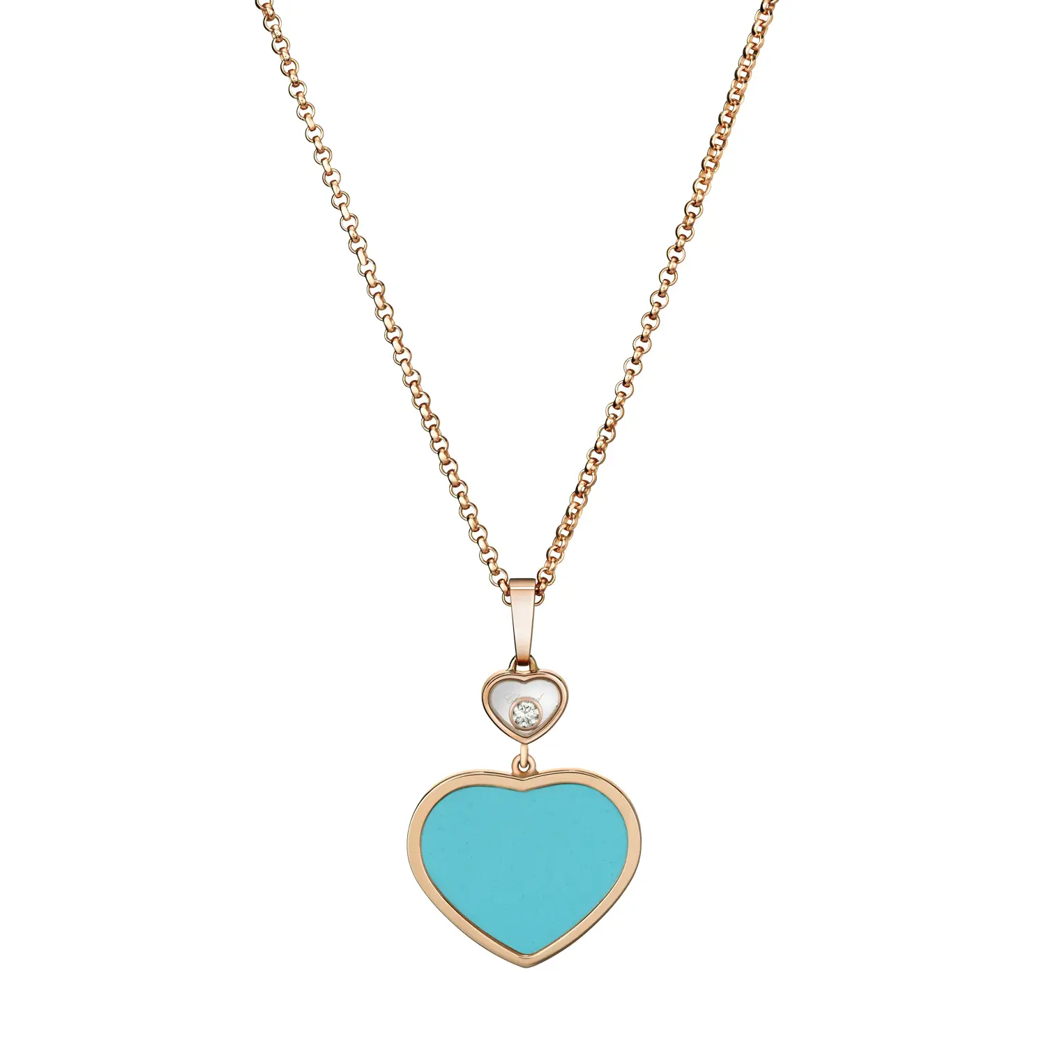 Mặt dây chuyền Chopard Happy Hearts 797482-5401 là biểu tượng của tình yêu, sự thanh lịch và niềm lạc quan. Được chế tác từ vàng hồng 18 cara có nguồn gốc đạo đức, thiết kế hình trái tim – biểu tượng đặc trưng của Chopard, thể hiện niềm vui và lòng nhân ái. Ở trung tâm là viên kim cương 0,05 cara, gợi nhớ triết lý “Little Diamonds Do Great Things” – những điều nhỏ bé có thể tạo nên điều vĩ đại.