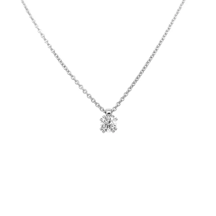 Sự thanh lịch không bao giờ lỗi mốt. Nếu bạn muốn luôn theo kịp xu hướng, hãy bổ sung những món trang sức kinh điển vào hộp trang sức của mình, những món có thể kết hợp với nhiều loại trang phục khác nhau. Chiếc vòng cổ bằng vàng trắng 18k này phản ánh tâm hồn của một quý cô thực sự, người có gu thời trang và biết cách chọn lựa những gì phù hợp với bản thân. Sự sang trọng được tôn lên nhờ viên kim cương tròn lấp lánh được đính trên chiếc vòng.