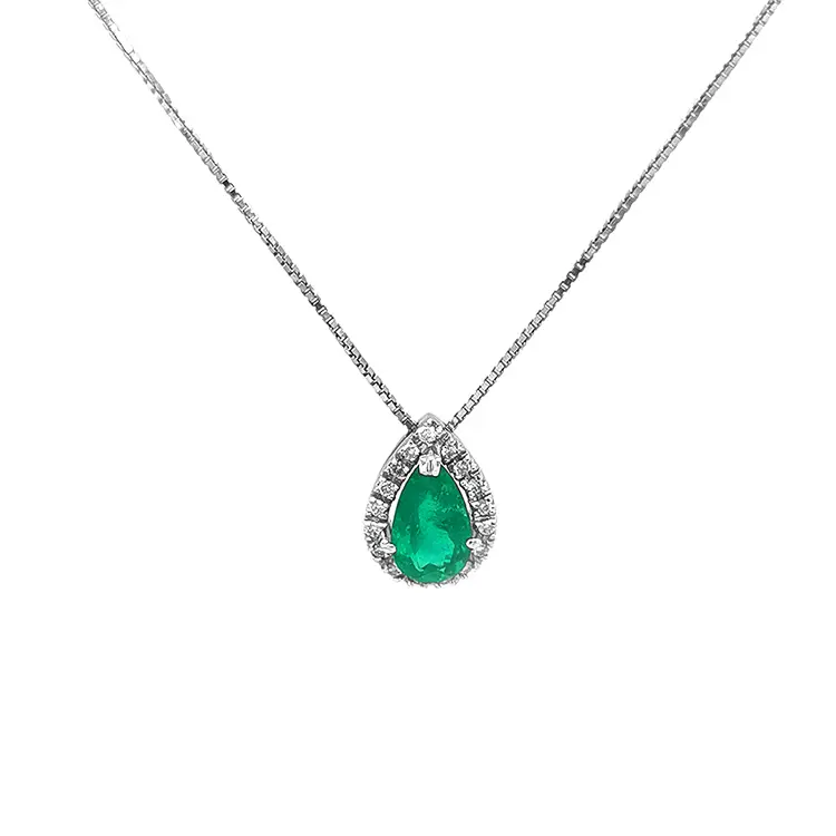 Mặt dây chuyền vàng đính ngọc lục bảo và kim cương