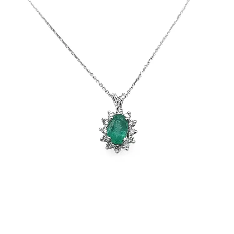 Mặt dây chuyền vàng đính ngọc lục bảo và kim cương