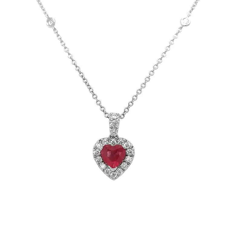 Ruby khơi dậy đam mê, mang lại năng lượng cho cuộc sống và bảo vệ người đeo. Nó cũng được cho là tăng cường sự gắn kết trong hôn nhân. Chiếc vòng cổ này được thiết kế với một viên kim cương vua được bao quanh bởi 14 viên kim cương nhỏ hơn, là biểu tượng hoàn hảo của tình yêu. Bạn sẽ nhận được chứng chỉ xác thực và dịch vụ bảo dưỡng chuyên nghiệp trọn đời, bao gồm kiểm tra và làm sạch định kỳ cho trang sức.