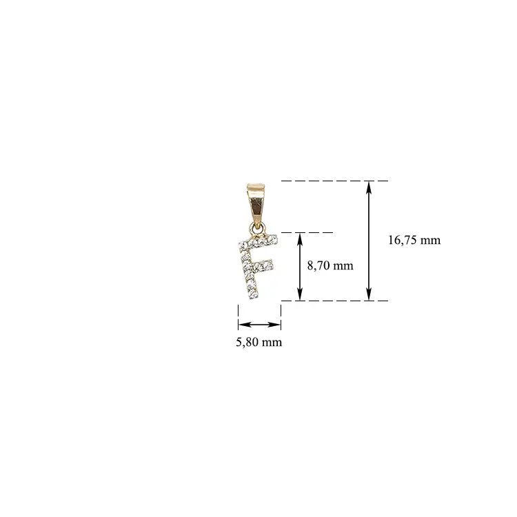 Mặt dây chuyền vàng hình chữ F đính đá zirconia