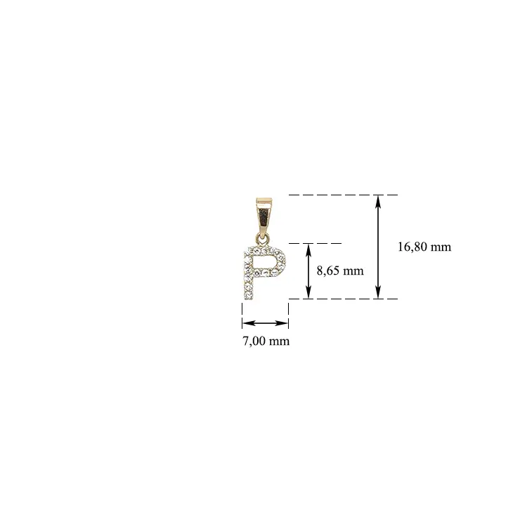 Mặt dây chuyền vàng hình chữ P đính đá zircon