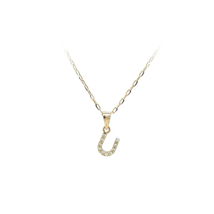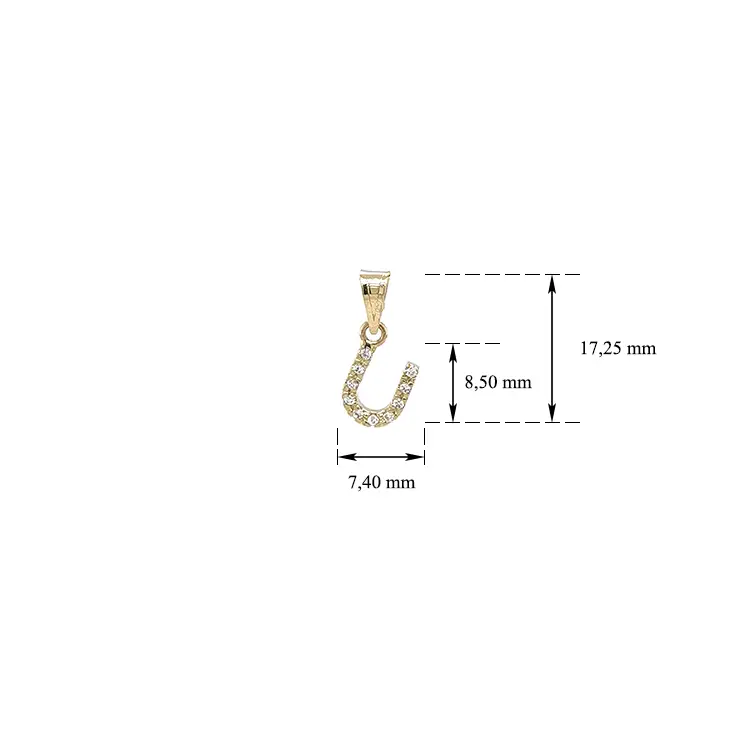 Mặt dây chuyền vàng hình chữ U đính đá zirconia