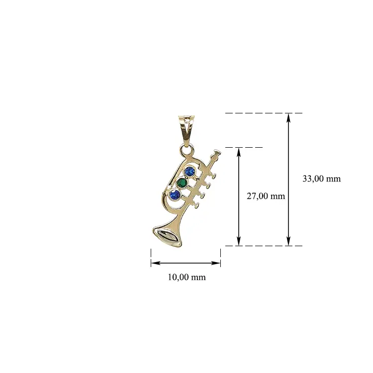 Mặt dây chuyền vàng hình kèn trumpet đính đá màu