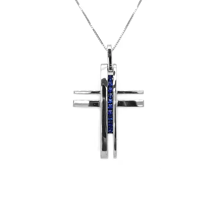 Mặt dây chuyền vàng hình thánh giá đính đá sapphire