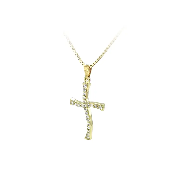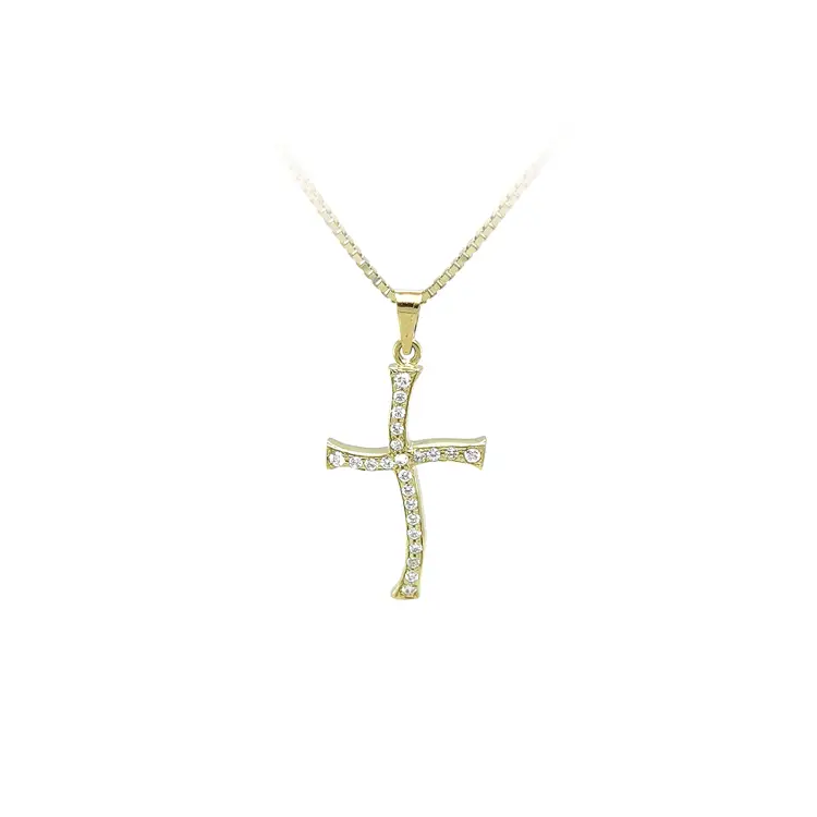 Mặt dây chuyền vàng hình thánh giá đính đá zircon